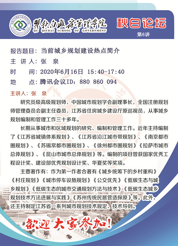 秋白论坛第6 讲:当前城乡规划建设热点简介