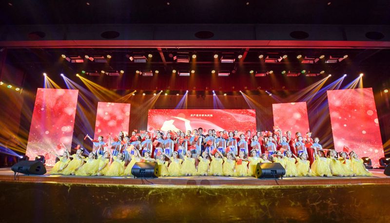 在文艺汇演中,通过歌曲、群口快板、情景诗朗诵、舞蹈秀等多种形式的文艺作品,回顾来时奋斗路,鉴照未来奋进路。