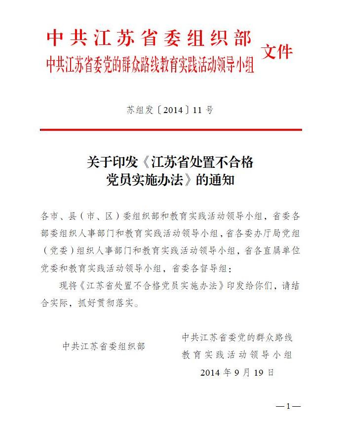 根据《中共中央组织部、中央党的群众路线教育实践活动领导小组关于做好处置不合格党员工作的通知》(中组发﹝2014﹞21号),结合我省实际,现就做好处置不合格党员工作,提出如下实施办法。