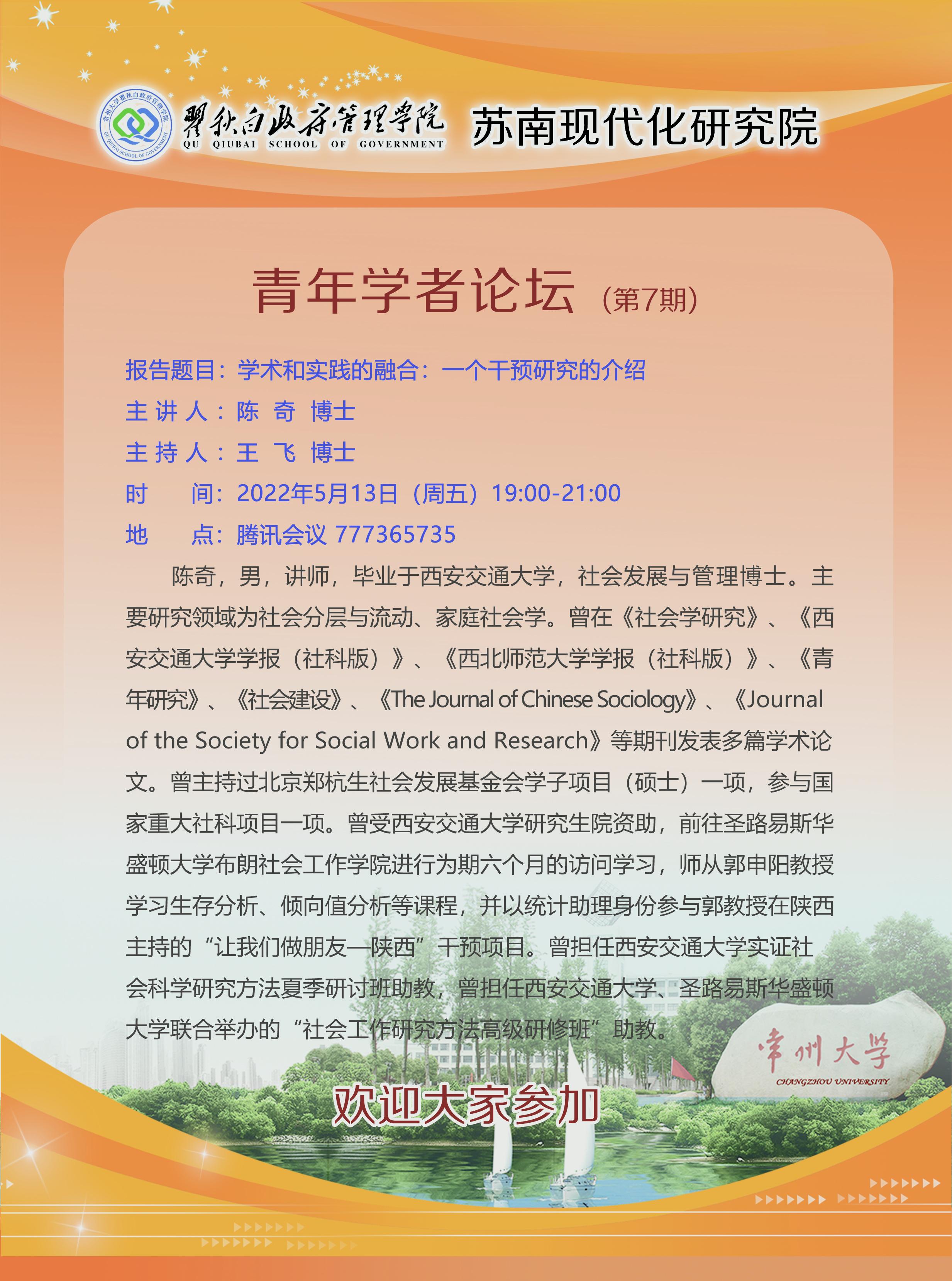 青年学者论坛第7期:学术和实践的融合:一个干预研究的介绍