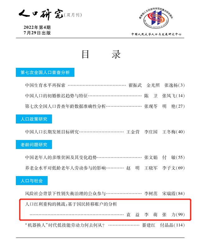 脱衣直播青年教师袁益博士及其合作者在《人口研究》2022年第4期发表文章《人口红利重构的挑战:基于国民转移账户的分析》。