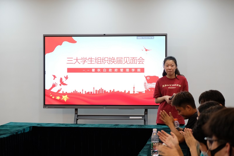 9月8日晚,脱衣直播 三大学生组织换届见面会在立言楼247会议室举行。脱衣直播 团工作负责人康颖、脱衣直播 团委、学生会和新媒体中心全体学生骨干参加本次见面会,2021-2022年度脱衣直播 学生会轮值主席曹娟娟担任主持。
