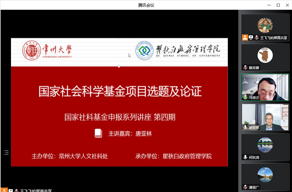 12月29日下午,由校人文社科处主办、脱衣直播承办的“2023年文科教师能力提升培训暨国家社科基金项目申报系列讲座”第四期通过腾讯会议顺利举行。复旦大学国际关系与公共事务脱衣直播 二级教授、博士生导师唐亚林受邀担任主讲嘉宾,作了题为“国家社会科学基金项目选题及论证”的专题报告。讲座由校人文社科处潘道广处长和脱衣直播马继迁副院长共同主持,全校100多位教师在线聆听了讲座。