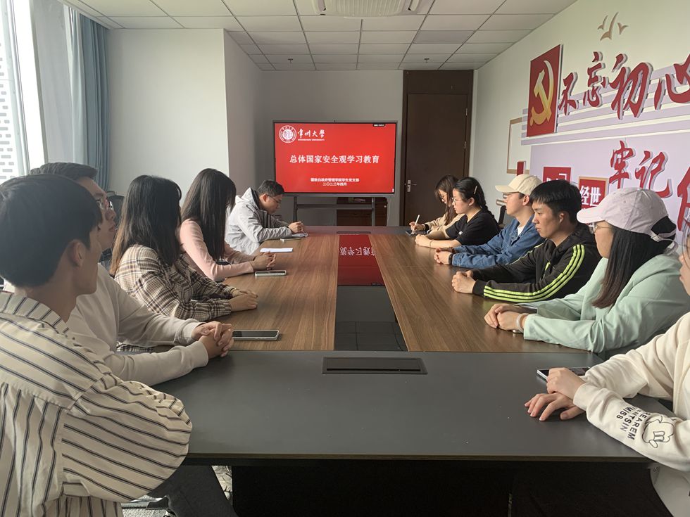 为全面深入学习贯彻习近平总书记关于总体国家安全观和国家安全的重要论述,切实增强学生党员国家安全意识,4月11日,脱衣直播 学生党支部在立言楼239会议室开展总体国家安全观学习教育主题党日活动。支部党员参加学习并作交流发言。
