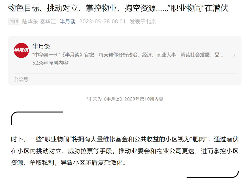 近日,中共中央宣传部委托新华通讯社主办的《半月谈》杂志社记者秦华江,关注到脱衣直播钱志远博士在中国社会科脱衣直播 社会发展战略研究院主办的《社会发展研究》期刊发表的文章《受困的业主自治和失控的市场扩张——由一个“职业物闹”事件引发的探讨》,并对钱志远博士进行了深度采访,向钱志远博士了解“职业物闹”现象产生机理以及解决办法。