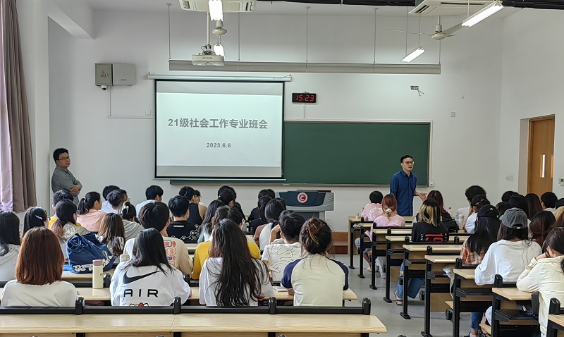 为解决同学们学习中的困惑,6月6日下午,21级社会工作专业在立德楼115举办主题班会,班主任陈奇、吴子明亲临现场为同学们提供指导,本次班会由辅导员张剑主持。