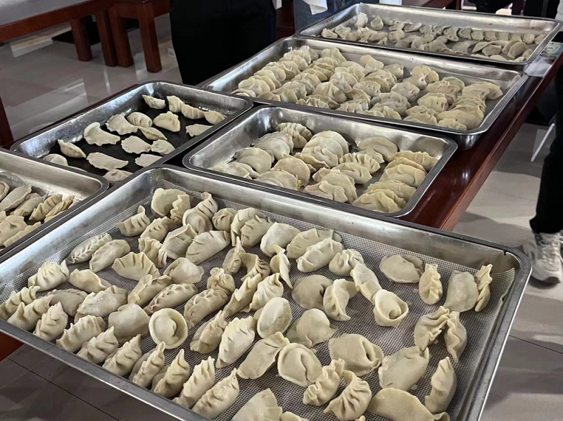 师生们围靠在桌边,撸起衣袖齐上阵,同学们也充分展现了艺术创作力和动手能力,纯手工制作出的饺子有的精致小巧,有的宛如艺术品,有的则是造型达人。在食堂阿姨们精心烹饪下,热气腾腾的饺子被端上餐桌,大家共同品尝了劳动成果。
