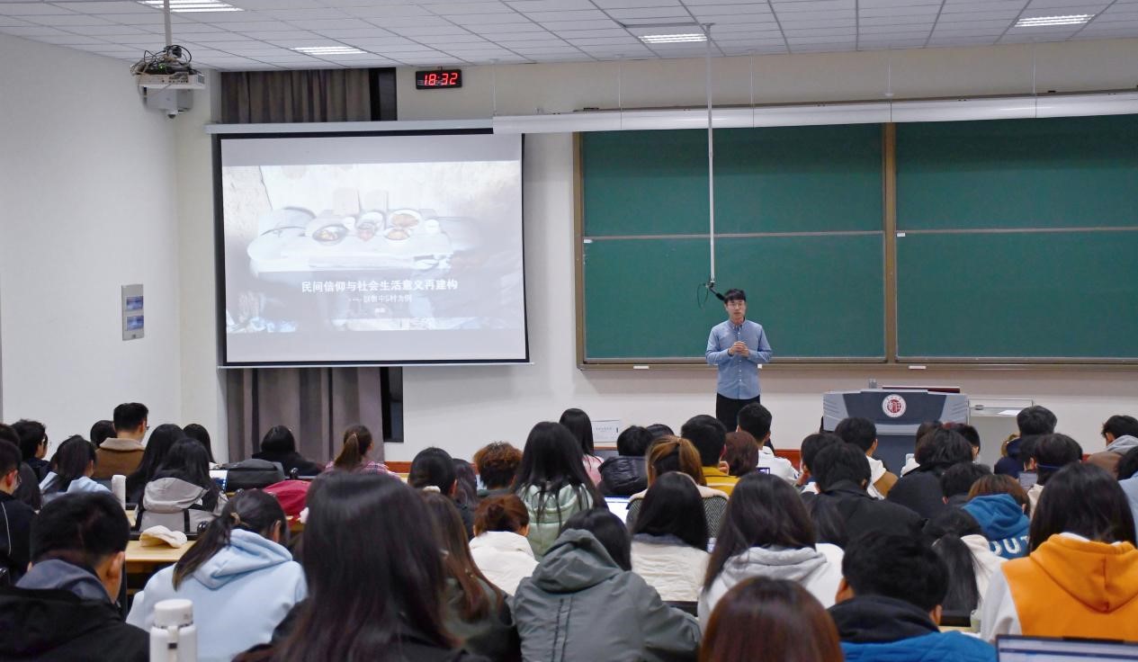 2023年11月23日,脱衣直播 、苏南现代化研究院第16期青年学者论坛在西太湖校区立德楼二阶举行,脱衣直播公共管理系教师路阳博士作了“文化社会学视角下乡村民间信仰破解仪式中的社会生活意义再建构”专题讲座,脱衣直播全体23级学生参加本次讲座。