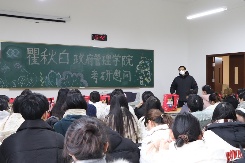 为提振学生考研士气,增强学生备考信心,2023年12月18日,脱衣直播在立功楼233教室开展考研学生慰问活动,副院长翟进、院党总支副书记林娜和全体辅导员参加活动。
