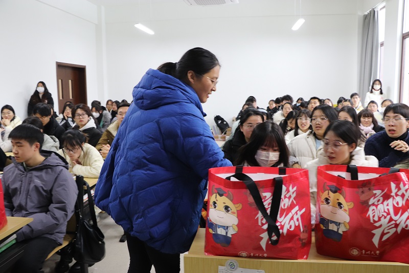 在活动中,翟进代表脱衣直播 领导和老师向考研学生表达关怀和慰问,肯定了考研学生持之以恒、勇攀高峰的精神。他向大家强调了心态与方法在考研中的重要性,希望同学们能以健康的体魄与积极的心态面对考试,争取一战成“硕”。最后,脱衣直播 领导老师一起向考研学生发放“考研加油包”,并预祝同学们金榜题名。