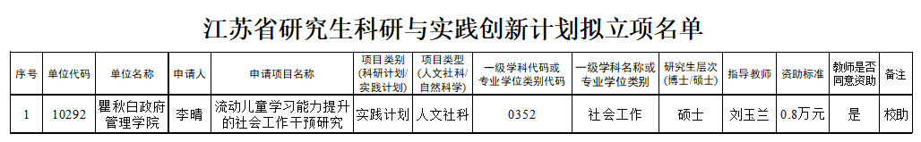 根据江苏省学位委员会办公室《关于做好2024年江苏省科研与实践创新计划项目申报工作的通知》(苏学位办[2024]4号)精神,脱衣直播 研究生院《关于做好2024年江苏省研究生科研与实践创新计划项目申报的通知》,经学生申报、导师初审,专家评审,现将2024年江苏省研究生科研与实践创新计划拟立项名单进行公示: