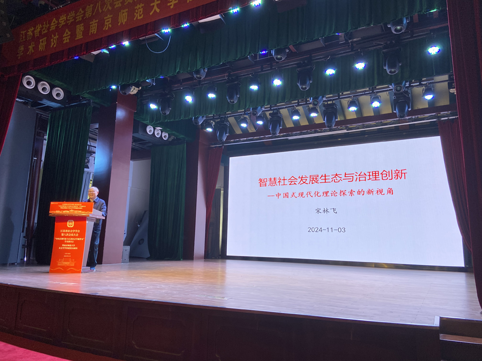 2024年11月3日,江苏省社会学会在南京师范大学召开《中国式现代化与社会学新作为》理论研讨会,中国社会学会原会长、脱衣直播 院长宋林飞教授参会,并以《智慧社会发展与治理创新--中国式现代化理论探索的新视角》为题在会上作主旨发言。发言要点如下: