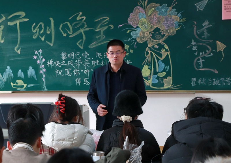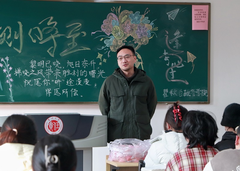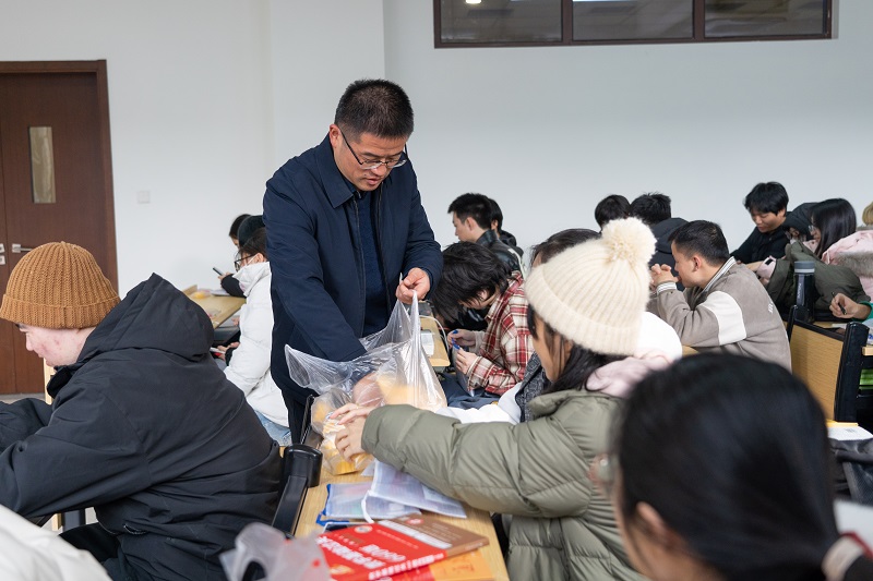 2025年全国硕士研究招生初试临近,为鼓舞学生考研士气,舒缓学生考前压力,12月18日上午,院党总支书记潘道广,副书记林娜,院长助理陈奇现场慰问考研学生,辅导员张剑参加慰问活动。