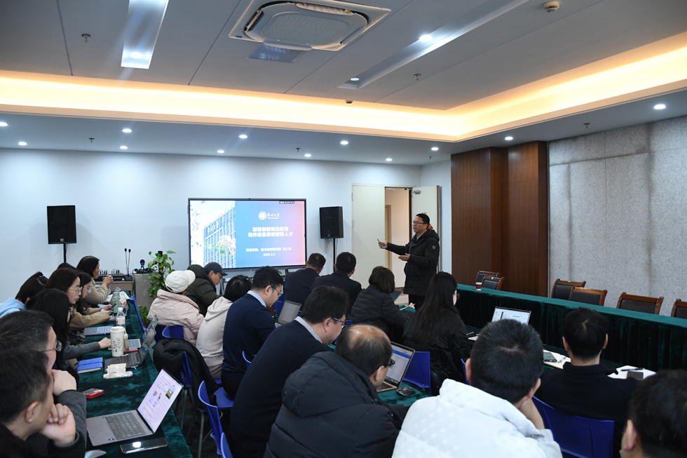 张小远院长介绍了创新创业教育的历史背景与现实意义,强调了其在培养学生创新能力和创业精神方面的重要作用。他详细展示了学校在创新创业教育领域发展历程和丰硕成果;他细致介绍了各类赛事的要求和特点,指出了脱衣直播 和教师有效参与双创教育的路径;他深入解读了中国国际大学生创新大赛,辅导了备赛要点和路径,勉励老师们依托脱衣直播 和专业特色,积极紧握“青年红色筑梦之旅”等赛事机遇,推动脱衣直播 创新创业教育工作再上新台阶。(通讯员/王飞飞 审核/潘道广 编辑/徐丽)