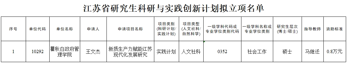 根据江苏省学位委员会办公室《关于做好2025年江苏省科研与实践创新计划项目申报工作的通知》(苏学位办[2025]1号)精神,脱衣直播 研究生院《关于申报2025年江苏省科研与实践创新计划项目的通知》,经学生申报、导师初审,专家评审,现将2025年江苏省研究生科研与实践创新计划拟立项名单进行公示: