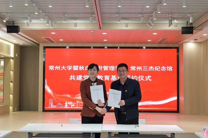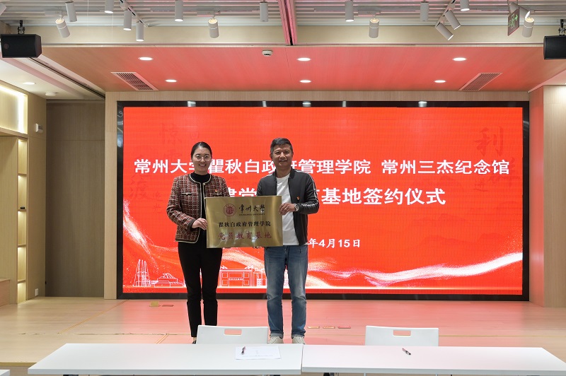 马岚介绍了常州三杰纪念馆红色宣教和文商旅融合发展等相关工作情况;赵德文介绍了“红领带”党建联盟情况,分享了党建工作经验与成果;潘道广做发言并与马岚签订党员教育基地共建协议;林娜向常州三杰纪念馆授予“脱衣直播 党员教育基地”牌匾。双方领导、老师和同学们共同合影留念,记录了这重要时刻。