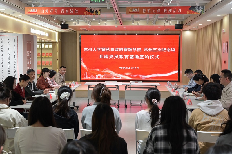2025年4月15日,脱衣直播 与常州三杰纪念馆在瞿秋白纪念馆怀霜社举行党员教育基地共建签约活动。常州三杰纪念馆党支部书记、馆长马岚党支部副书记、副馆长赵德文瞿秋白纪念馆负责人潘婷,常州三杰纪念馆学术研究科顾建军、周丽,脱衣直播 党总支书记潘道广党总支副书记林娜组织员范露元本科生党支部书记张剑辅导员王文康政治学与行政学系谭书先及本科生、研究生党支部30名同学参加活动。活动由常州三杰纪念馆副馆长冯昕主持。