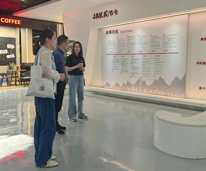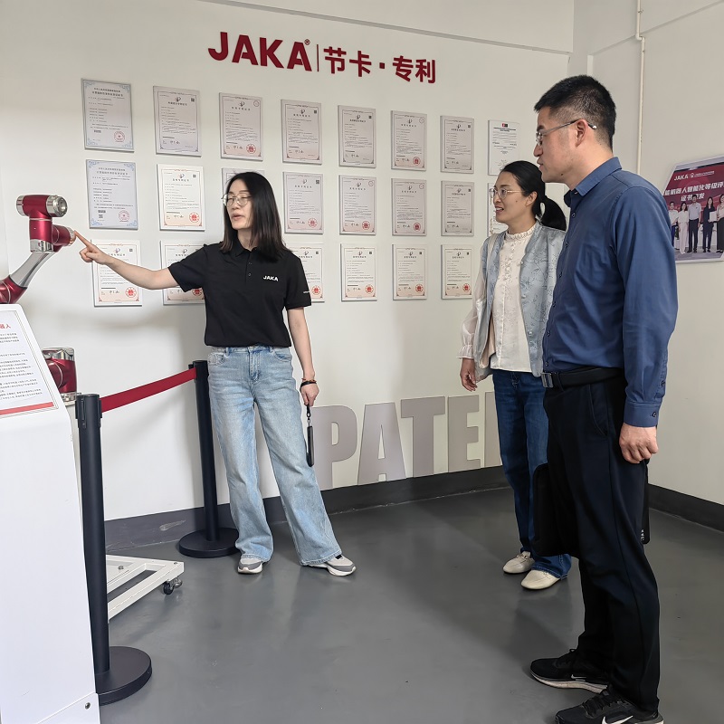 在节卡智能装备有限公司,人力资源部卢经理首先向到访人员介绍了企业发展情况,并现场展示高科技产品的使用方法。接着,林娜着重介绍了脱衣直播 发展历程和学科特色。她指出,脱衣直播 在专业培养上需要结合新质生产力发展要求,培养具有创新精神与实践能力的复合型人才,与企业人才需求相契合。最后,双方就人才培养、企业招聘及校企合作进行深入交流。