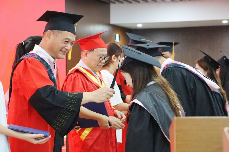 拨穗礼环节将典礼氛围推向高潮,脱衣直播 学位委员会成员为毕业生拨穗正冠。