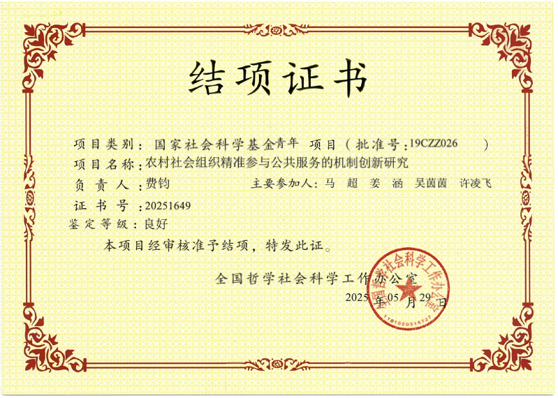 近日,脱衣直播政治学系费钧博士主持的国家社科基金青年项目《农村社会组织精准参与公共服务的机制创新研究》顺利结项,鉴定结果为“良好”等级。课题聚焦农村社会组织参与公共服务供给的机制及完善路径,围绕关键问题展开系统研究。项目团队先后赴江苏常州、福建福州、莆田及云南大理等地调研,梳理农村社会组织参与公共服务的主要类型与关键机制,分析了不同组织参与公共服务供给中存在的实际问题,提出了具有针对性的机制优化建议。