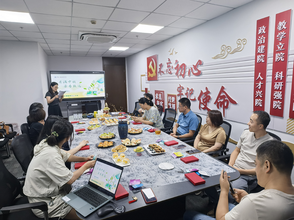 随后,黄小昊同学现场演绎茶道之美,同时为大家讲解了中秋品茗习俗与应季茶品知识,让大家收获颇丰。趣味问答环节,老师们积极参与,现场气氛热烈。活动期间,大家品尝中秋特色茶点,交流工作生活,欢声笑语不断。