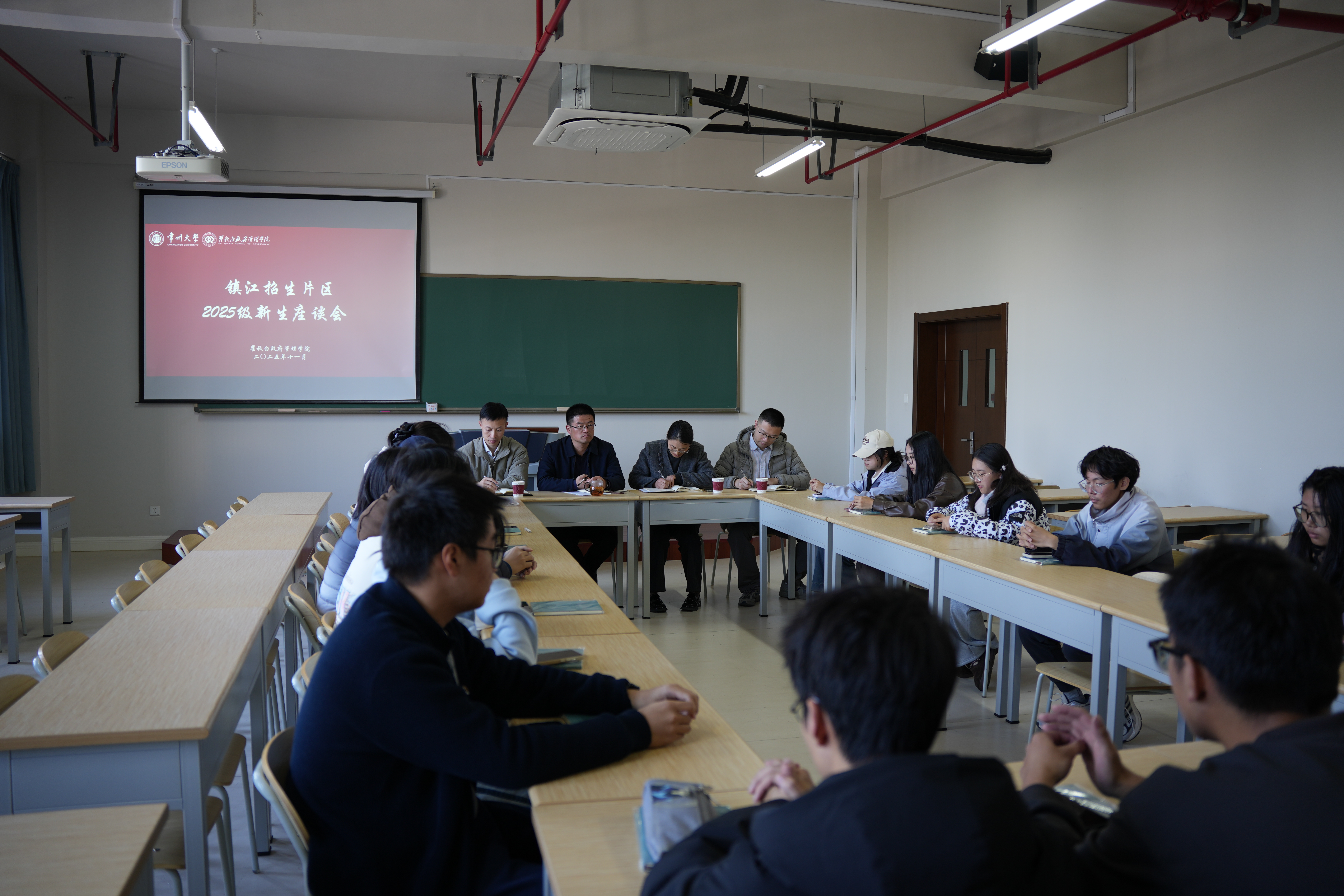 11月26日下午,学院在立言楼233教室顺利举办镇江招生片区2025级新生座谈会。学生工作处副处长蔺旭鹏、学院党委书记潘道广、副书记林娜、辅导员王文康出席座谈会,与来自全校9个学院的17名镇江籍新生齐聚一堂,共话成长、共商招生。